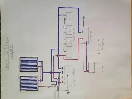 - Add a label for the battery monitor that says to flip the switch to the grid (to the right) once it reads a certain voltage, to allow the batteries to recharge.