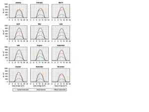 "During the course of the day, GHI peaks in the early afternoon throughout the year, highest between 11 a.m. and 3 p.m. and usually peaking between 1 and 2 p.m. (See Figure 8.) The peak hourly mean is consistently over three times the daily mean. DNI is of course also highest during the middle of the day, but because it involves tracking the sun's movement, the peaks more closely resemble plateaus that last from 10 a.m. to 5 p.m. The largest values for DNI are found in the mid-afternoon during February–May, early afternoon during June–September, and late morning during October–January."