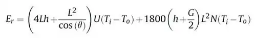 In order to determine the size of a greenhouse which can be supported by this amount of waste heat, a parametrized equation to solve for the linear dimension of a square gabled greenhouse was derived and is given by: