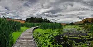 A greywater marsh is a constructed wetland for greywater treatment. Although it is artificial, it mimics a natural wetland and attracts birds, fish, insects, etc., as well as growing plants, all while treating wastewater and acting as a biofilter for removing pollutants from water.