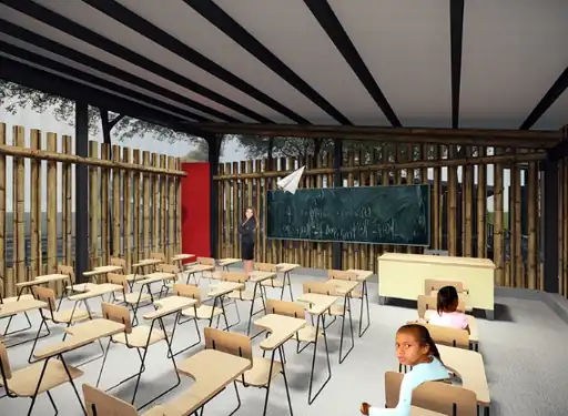It is common within rural communities for children to attend classes outdoors, under the shade of a tree. This project includes a fourway bamboo system to allow ventilation and protection in the classroom and other areas, thus integrating a decades-old custom within a modern design proposal.