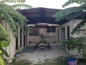 Haiti Communitere has re-purposed a few shipping containers to serve as homes, offices, and storage spaces. The shipping container that has been converted into a living space has a bedroom, shower, toilet, and a kitchen. It also has air conditioning, because Haiti's climate is too warm for it to be habitable otherwise.