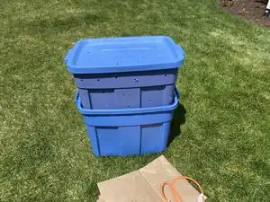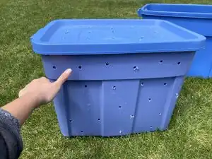 Drill holes in one of the storage bins in all of the sides, bottom and lid all 2-3 inches apart.