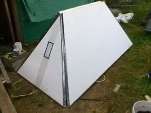 - Tape the other triangular end piece only to the tarp. This is the door.