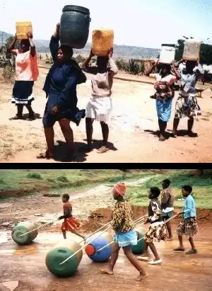 The Hippo Water Roller was specifically designed to alleviate the suffering caused by a lack of access to water. The Hippo Water Roller is a barrel-shaped container designed to transport 90 liters (20 gallons) of water. It comprises of a drum with a large screw-on cap and a clip-on steel handle.