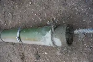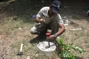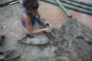 When concrete is in the entire bottom culm, fasten steel clamps around the diameter of the bamboo and leave to dry (may take several days).
