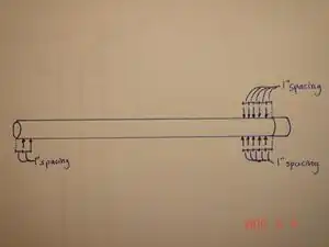 Drill twelve 1/2" holes in PVC pipe with 1" spacing
