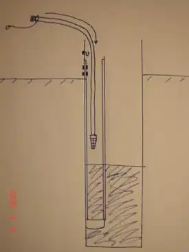Note the hose length may have to be adjusted to fit the well depth. For the appropriate length hose, the foot valve should be just above the well cap when hanging from the open eye-hook as seen in step 10 above.