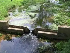 Weirs are small dams that can be used in measuring flow rate for small to medium sized streams (a few meters or wider). They allow overflow of the stream to pour over the top of the weir, creating a waterfall, as seen in Figure 4. Weirs increase the change in elevation making the streamflow more consistent which makes flow rate measurements more precise. However, it is very important that all the water in the stream be directed into the weir for it to accurately represent the stream flow. It is also important to keep sediment from building up behind the weir. Sharp crested weirs work best. There are many different types of weirs which include broad crested weirs, sharp crested weirs, combination weirs, V-notch weirs and minimum energy loss weirs.