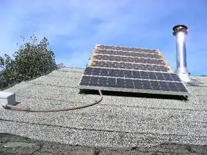 - Description: This is a large solar panel arrary that powers the McBane and Trush office building. The hot water solar collectors on the right are used inside for the radiant floor heating system.