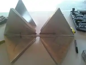 Use available resources to bend tabs on the aluminum diamond. One way is to screw together two pieces of wood and place the tab in between them (this is our suggestion but there are other ways to bend the aluminum).