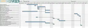 The Gantt chart produced in GanttProject can be exported to: Image files (jpeg,png), HTML, PDF or Microsoft Project. An example Gantt chart for the installation of a data acquisition system is shown below.