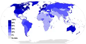 Who has internet access via a computer ? Not as many as you might think. On average there are 32,8 internet users per 100 inhabitants worlwide. The percentage of internet users is far higher in developing countries than in developing countries (in developing countries 85 to over 90% of the population have internet access), so we can assume an average that is far lower than 30% in developing countries. See Wikipedia:List_of_countries_by_number_of_Internet_users. The fact that there are so little internet users can be explained by the fact that little internet distribution points and/or points with little badwith have been made by companies. Many areas thus do not have any internet access at all (well, unless the consumer uses satellite internet, which can be received anywhere, but which is very costly).