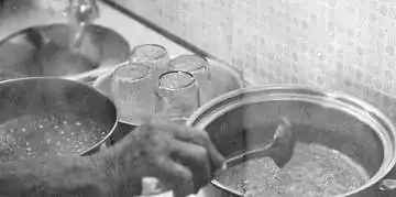 While the jelly is cooking sterilize the jars or glasses by standing them upside down in a pan of boiling water for fifteen to twenty minutes. Be very careful because they might break.