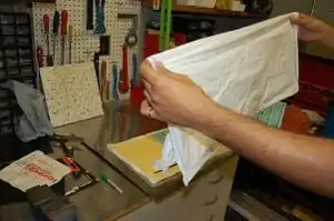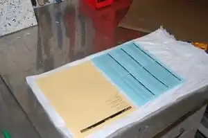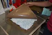 Repeat the previous steps but filling a metal mold as shown on the right instead of making layers with raw bags and paper.
