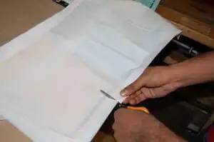 If you are making a film, it is now time to shred the material to make feedstock for the final tile. You can use scissors, or if available a shredder.
