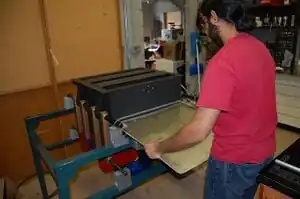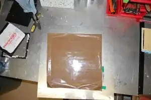 Take the thin film mold and slide it between the two press plates of the Kingston Hot Press.
