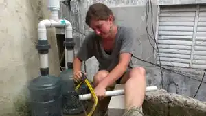The rainwater catchment system in La Yuca is composed of 6 main parts; the area of catchment, the gutter, primary screening, first flush, the storage unit, and the filtration.