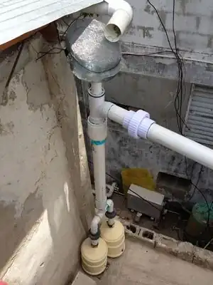 - Create a mosquito/insect barrier for the rainwater storage overflow using a diagonally cut PVC pipe and plastic screening material.