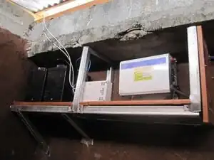 The Practivistas Solar team of 2015 returned to the system in La Yuca and found that the inverter was not working and needed to be repaired. They also found that the rainwater catchment system has been dismantled due to a storm and children playing with it. The teaching assistant Jack Ingram and Javier Duran Jr fixed the rainwater catchment system and Javier also fixed the wiring for the LED lights in the storage room that seemed to be disconnected by a dent in the roof, possibly as a result of the storm. To fix the inverter Tito, local electrician and taxi driver, helped the team by taking the inverter to SM Electronica to have it repaired for 1,000 pesos. The inverter was then reinstalled by Tito and Lonny Grafman. The team also monitored the health of the batteries by discharging them to 60% and recharging them. By monitoring the voltage with a multimeter the team was able to see the duration of time it took for the batteries to charge. The batteries proved to be healthy as the school rarely uses the system. The team explained how to operate and how to maintain the system with the maintenance people at the La Yuca school.