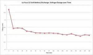 Discharging Graph illustrating the data the team collected when they were discharging the La Yuca batteries.