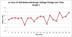 Recharging Graph 1 illustrating the data the team collected when they were recharging the La Yuca batteries.