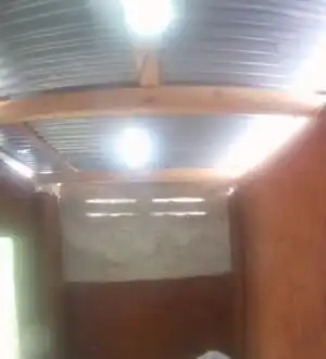 In 2011 a renewable energy system used to power lights was installed on a roof near the school.[2] In 2013 the system no longer worked, because the wire was cut, the battery was dead, and there was corrosion in some of the wires. To solve this issue, the panel was moved to the roof of the school, closer to the schoolroom, where it is visible to nearby neighbors and where theft is less likely. Two new batteries were installed, and the system was simplified, since the wind turbine was no longer being used. The shunt and relay installed previously were taken out, and now the batteries, the panel, and the lights are connected directly to the charge controller with fuses near the battery and the light switch.