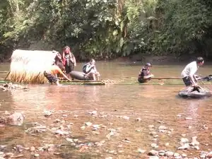 Three bamboo rafts were prepared by the organizer. It was an experience that can not be forgotten since passengers had to in and out of the raft. Several times the rafts stuck in rocks because the water is shallow. The organizer did not anticipate that dry season will affect the height of water in the river. We also had to stop several times because the bamboo were loose as the ropes were not bound as they should.