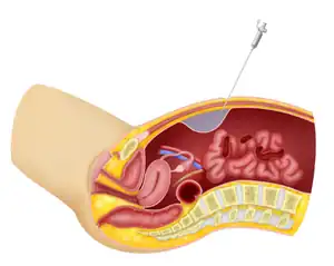 - Aspiration should not show any gas, blood, intestinal contents or injected saline.