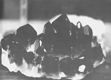 A close-up of some smokey quartz. Notice the points whose sides are naturally perfectly smooth and parallel in all types of quartz.