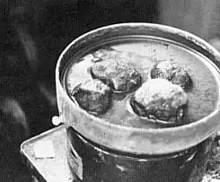 To separate the gold from the remaining impurities, use mercury because mercury has a specific gravity, or weight per cubic measure, so that everything but gold will float. The gold will be absorbed. Then after pouring off the particles that are floating, all that is left is the gold and mercury. The next step is to evaporate the mercury. But since evaporated mercury lets off a deadly gas, it must be done safely. There is a homemade way to do it. Hollow out a cavity in an average potato, pour the mercury and gold mixture in, put the other half of the potato on, and tie it together very tightly with wire. Then heat it in an oven that is well ventilated. Be sure to get away to not breathe any of the fumes, After a time the mercury will evaporate, leaving the gold.