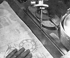 He uses the diagrams to facet the ruby at the end of the arm. The gears on the arm are used to set the angles that the stone is cut. ( photos by Mike King)