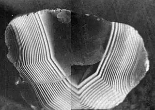 This close-up of Lake Superior agate shows the tiny lines in the stone.