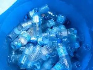 Collect plastic bottles. They need to have caps in order to keep moisture out. Water bottles are preferable because they are typically cleaner. Bottles with short shallow necks are also preferable because they stack better than bottles with long steep necks.