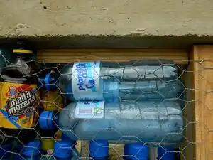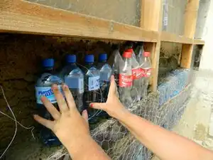 Secure one section of the other side of the wall with chicken wire from the bottom up to the height of one row of bottles, leaving the top open to add bottles.