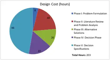 Below is a pie chart detailing how the total hours spent on this project were distributed over various phases. A total of 203 hours were spent on this project