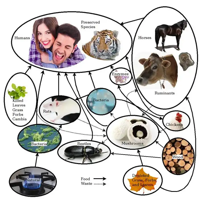 - OSE Wiki "Synfood" (i.e. protein and other dietary components from microbial organisms fed on gas or other hydrocarbons)