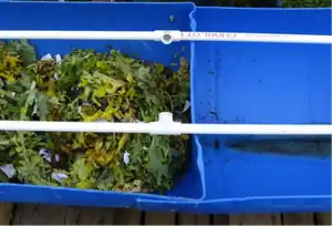 Over time, due to the break down of organic waste, leachate will build up at the bottom of the bin. As the barrel is elevated, the leachate should drain through the drain holes in the divider and down to the spigot area. The spigot can then be opened and the leachate collected. The leachate can be mix at a ratio of 1 cup of leachate to 2 gallons of water. The resulting liquid can be applied to soil or plants.