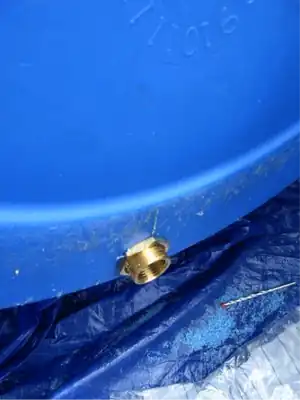 A gutter strainer is then trimmed so that it will lay flush with the bottom of the barrel, and cover the entrance to the spigot. 100% silicone caulk is then applied to the area around the spigot, and is also used to glue the gutter strainer to the bottom of the barrel.