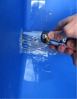 The outside of the connection is caulked as well, in order to prevent leaking. The caulk is then allowed to set for at least 24 hours.