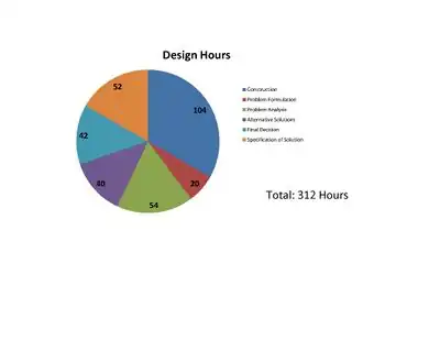 The chart to the right shows the breakdown of design hours that went into constructing the Sprouting Education School Garden. A majority of the hours were spent in the construction phase.
