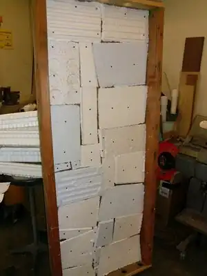 - Now staple insulation onto the cabinet doors but do not screw them in yet.
