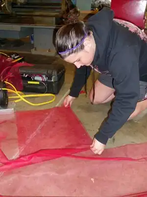 Fig 3e: Justin Thompson attaching base to Solar Collector. -