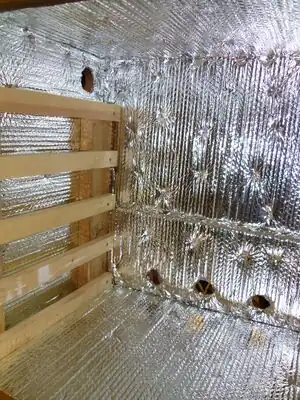 - Lay down a layer of Styrofoam (from coolers or tv boxes) to cover the base surface of the plywood. Tack down the Styrofoam into the wood so that it does not move. Next lay down insulation on top of the Styrofoam, covering the whole area inside the foundation. A blanket, wood chips, or other insulating material can be substituted for the Styrofoam and insulation.