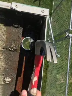 Use a hammer to install downspout pipe into the hole in the gutter. Apply JB Weld to secure pipe and make sure that it is flush with the gutter to prevent water backing up around a potential lip
