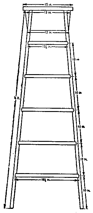 Strength is an essential factor in the design of a stepladder, but lightness and dimensions which permit easy movement from one part of the house to another are important considerations. The ladder to be described meets those requirements, but the dimensions may be varied according to the particular use to which it is intended. The lumber used throughout is of 1-inch stock (7/8 inch when finished) and of good, sound quality. The quantities required are as follows: