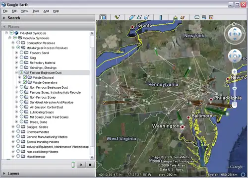 - If anyone is interested in obtaining either the raw data used in this paper or the kml files to search for additional opportunities to reduce waste in Pennsylvania - please contact --Joshua 08:48, 15 January 2011 (PST) We really have just scratched the surface with what can be done by coupling GIS and industrial symbiosis even with this data set.