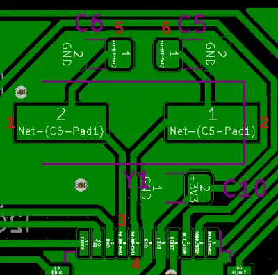 - Desolder the two loading capacitors (C5 & C6) from the board