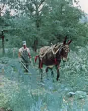 Mules are beasts of burden, used only for working and occasionally riding. For almost anything else, they are of little use. Therefore, when mechanized power took over, mules rapidly declined in numbers until now, even in Missouri which is noted for its mules, one has to search for people like Charley who still prefer them for work. unlike the horse, which has increased in number because of its recreational value, the mule population has dwindled to a very few.