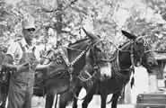 Though almost gone now, mules have a long history of use. They orginated in Asia Minor and were sent to Greece at least 3000 years ago. However, they were not used in great numbers in the United States until after the civil War. Then, "Mules were the foundation of the world," Charley asserts. Farmers used them. Miners used them. The army used them. Construction companies used them. They laid the pipe lines, built the railroads, build the power lines, even built the roads.